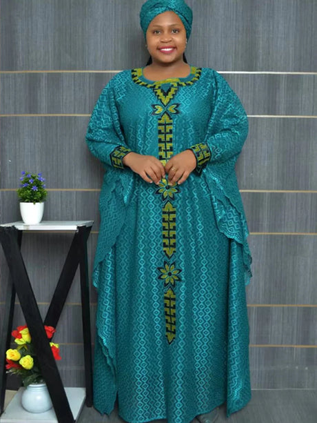 African American mother expensive custom hot gold jacquard fabric loose dress