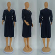 African Pleated Dresses for Women Summer Elegant African Half Sleeve V-neck Polyester Solid Color Dress Dashiki African Clothes - Navy blue / M / VIP Price is backordered and will ship as soon as it is back in stock.