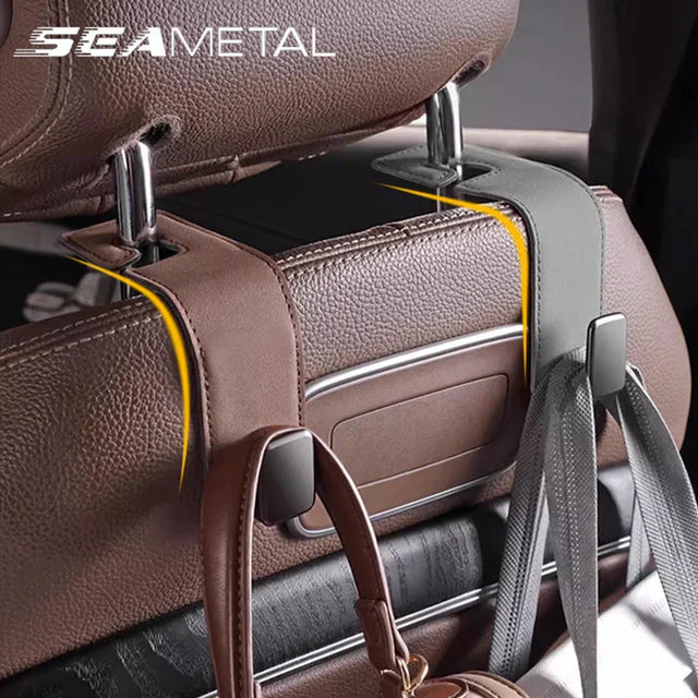 SEAMETAL Car Seat Back Hook Universal Hidden Headrest Hanging Hooks Auto Interior Portable Storage Pu Leather Hook Accessories