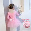 Sequin Gauze Skirt Children Dance Clothes Girls Ballet Dress Kids Training Leotard Stage Costume Bow Back Long Sleeve PurplePink - Pink Fleece / 110(100-115cmHeight) / VIP Price is backordered and will ship as soon as it is back in stock.