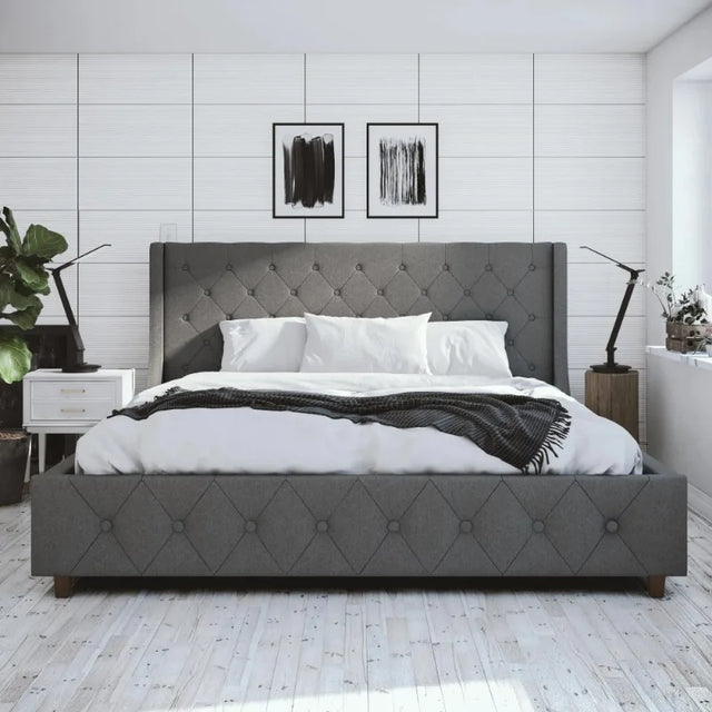 Mercer Upholstered Bed, King Gray Linen muebles de dormitorio queen bed frame bunk beds for kids loft bed