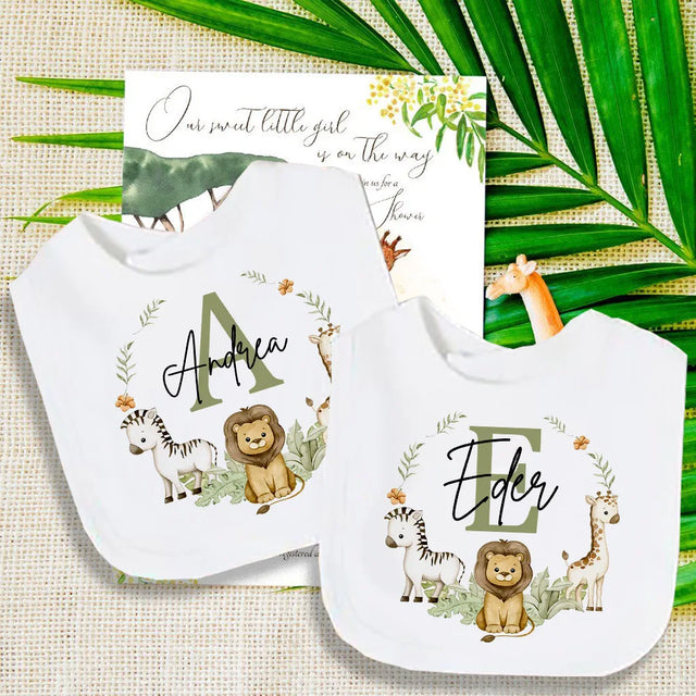 Personalised Baby Bib Safari Animals Bibs Initial with Name Newborn Wild One Birthday Gifts Infant Saliva Towel Baby Shower Gift