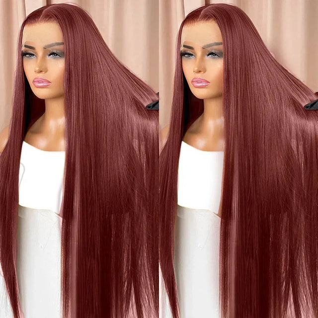 Reddish Brown Lace Front Human Hair Wigs Pre Plucked Dark Red Brown Bone Straight 13x4 13x6 HD Lace frontal Wig Brazilian Hair
