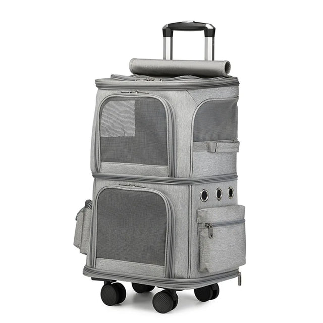 Pet Double-layer Trolley Bag Outdoor Travel Universal Wheel Pet Trolley Cat Bag Folding Pet Trolley Case Pet Carrier Cat Bag - gray / VIP Price is backordered and will ship as soon as it is back in stock.