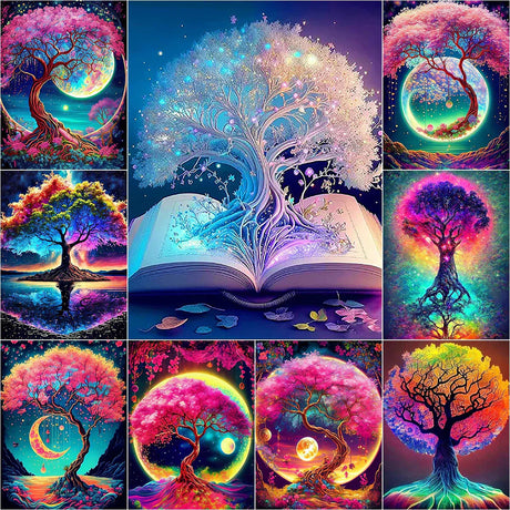 Colorful Trees And The Moon Personality DIY Full Drill Diamond Decorative Painting