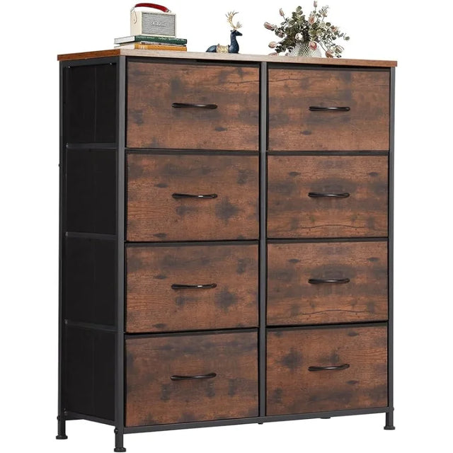 OLIXIS Organizer Storage 8, Chest of Drawers with Fabric Bins, Tall Dresser with Wood Top for Bedroom(Brown/Black)optional
