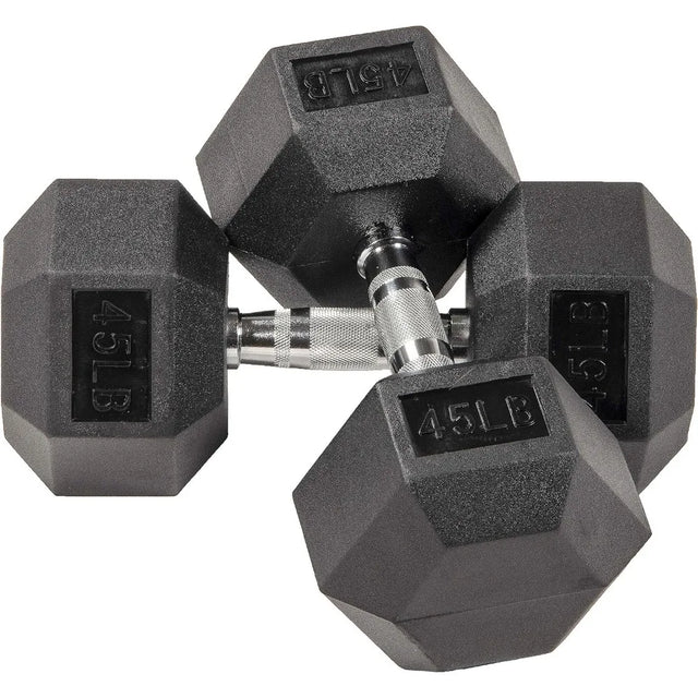 Rubber Coated Hex Dumbbell Weight Set and Storage Rack, Multiple Packages