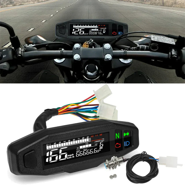 Newest Universal 12000 RPM Motorcycle Speedometer Oil Gauge Tachometer Digital Meters Instrument Cluster Turn Signal Light