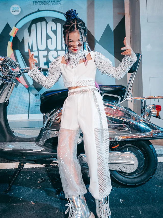 ZZL Children's Sequins Jazz Dance Suit K-pop Clothes Girls' Fashionable Costumes Cool Girls' Catwalk Fashion K-pop Stage Outfit