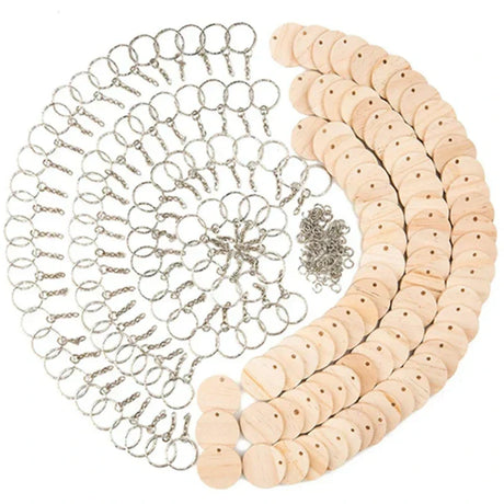 Wood Charms Key Chain Keyrings Blank For DIY Engraved Pendants