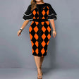 Autumn Women Trend Printing Plaid X-shaped Plus Size Midi Dress Women's Fashionable Butterfly Sleeve Elegant Party Dresses Robe - Diamond lattice / XL / VIP Price is backordered and will ship as soon as it is back in stock.