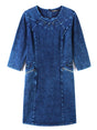 LIH HUA Women's Plus Size Denim Dress Autumn Chic Elegant Dresses For Chubby Women Round Neck Cotton Knitted Dress - Blue / 50 / VIP Price is backordered and will ship as soon as it is back in stock.