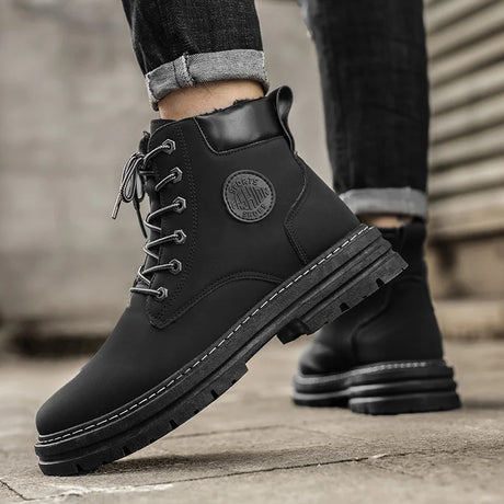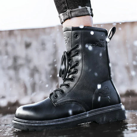 Winter plush and thick yellow boots for warm outdoor work wear, Martin men's boots