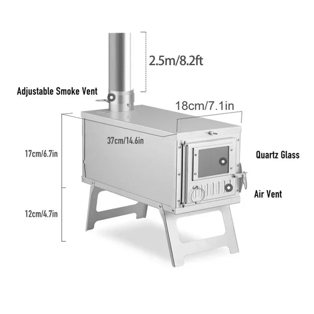 Portable Camping Tent Stove with Glass Window Outdoor Fire Wood Heaters Quick Assemble Backpacking Hiking Burned Stove - One Glass Window / VIP Price is backordered and will ship as soon as it is back in stock.
