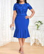 Plus Size Fashion Lace Splice Dress Women's Sexy Round Neck Short Sleeve High Waist Fishtail Dress Elegant Party Dress - Blue / XL / VIP Price is backordered and will ship as soon as it is back in stock.
