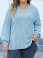 GIBSIE Plus Size Long Sleeve T Shirts for Women Spring Fall Fashion V Neck Solid Ribbed Knit Casual Tee Tops Female 2023 Clothes - Sky blue / L / VIP Price is backordered and will ship as soon as it is back in stock.
