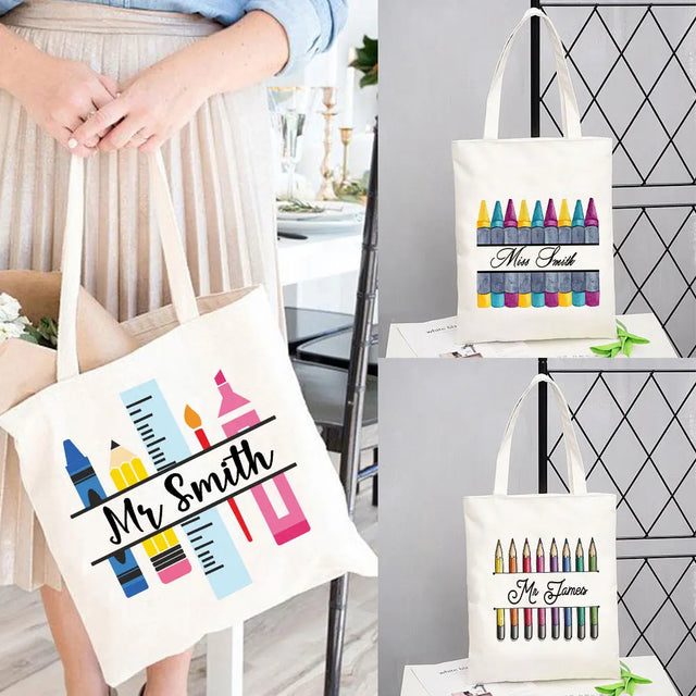 Personalized Kawaii Teacher Shopping Bags Women Totes Thank You Teacher Shoulder Bags for Travel Handbags Canvas Shopper Bag - Beige / VIP Price is backordered and will ship as soon as it is back in stock.