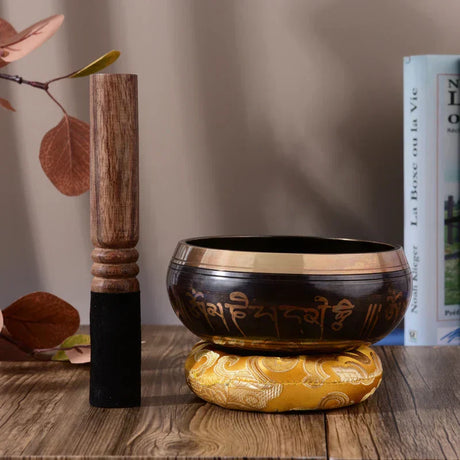Tibetan Singing Bowl Set with 12.5cm/5inch Handmade Metal Sound Bowl & Soft Cushion & Wooden Striker