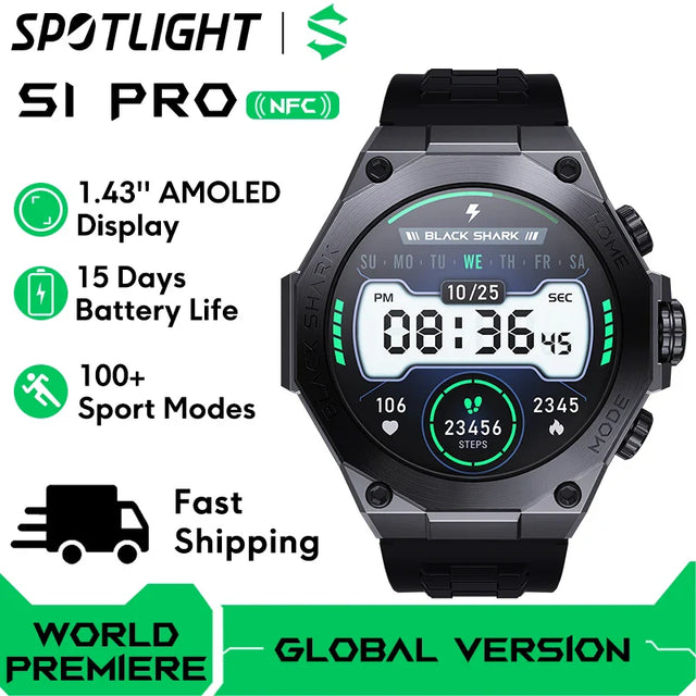 [World Premiere] Global Version Black Shark S1 Pro Smart watch 1.43'' AMOLED Wireless Charging 15 Days Battery Life NFC Chat GPT