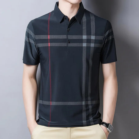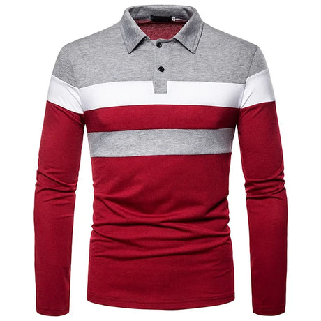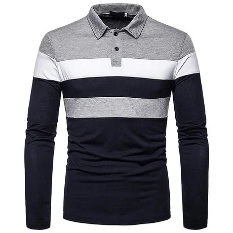 Men's Long Sleeve Contrasting Colors Polo T-shirt Casual Polo Shirts
