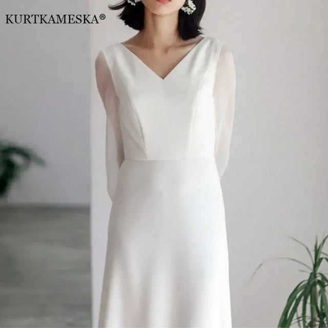 French White Wedding Dresses for Bride Elegant Sexy V Neck Long Prom Evening Guest Party Women Dress Summer 2024 Formal vestidos