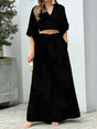 Floral Print V-neck Lace Up Suit High Waist Wide Leg Pants And Lantern Sleeve V-neck Top Set Women's Clothing - Black / S / VIP Price is backordered and will ship as soon as it is back in stock.