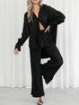Wsevypo Women Two-piece Pleated Pants Suits Casual Chic Solid Color Long Sleeve Button down Shirts and Straight Leg Trousers Set - black / S / VIP Price is backordered and will ship as soon as it is back in stock.